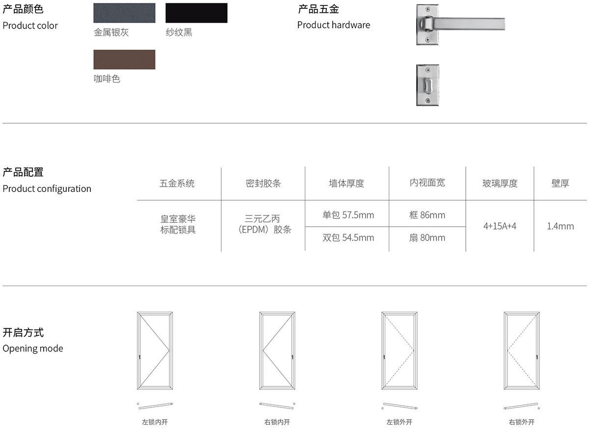皇室平開門性能參數-卡諾德式門窗